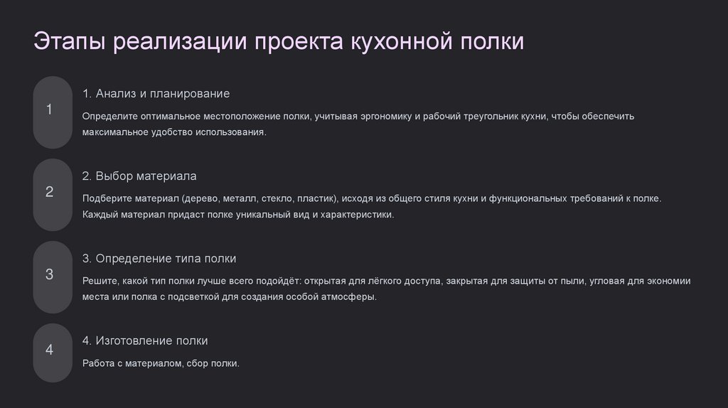 Этапы реализации проекта кухонной полки1. Анализ и планирование