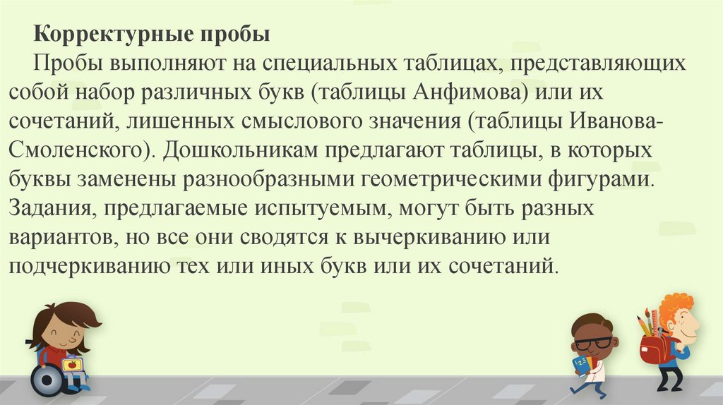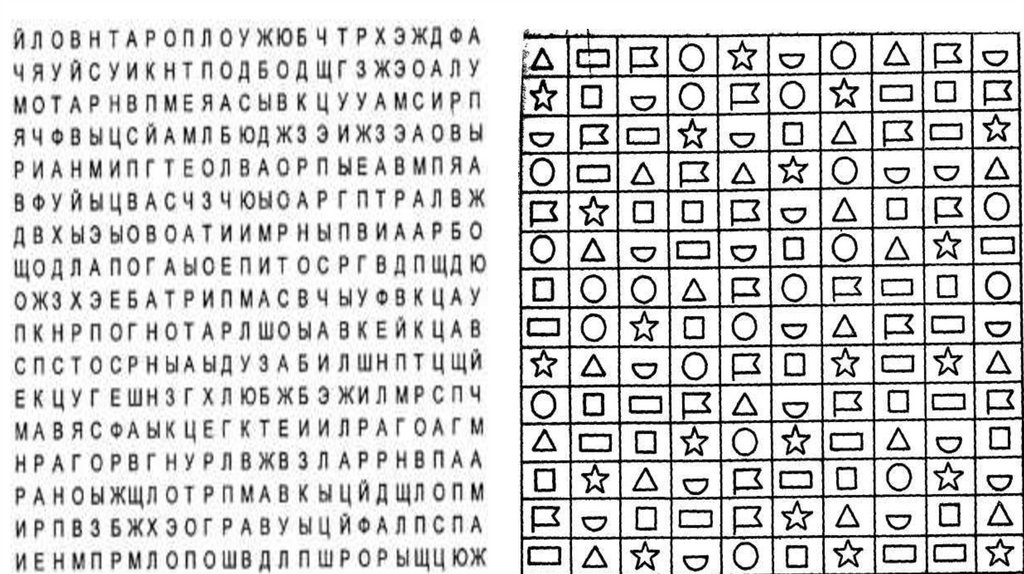 Корректурные пробыПробы выполняют на специальных таблицах, представляющих