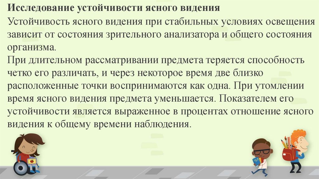 Исследование устойчивости ясного виденияУстойчивость ясного видения при стабильных условиях освещения