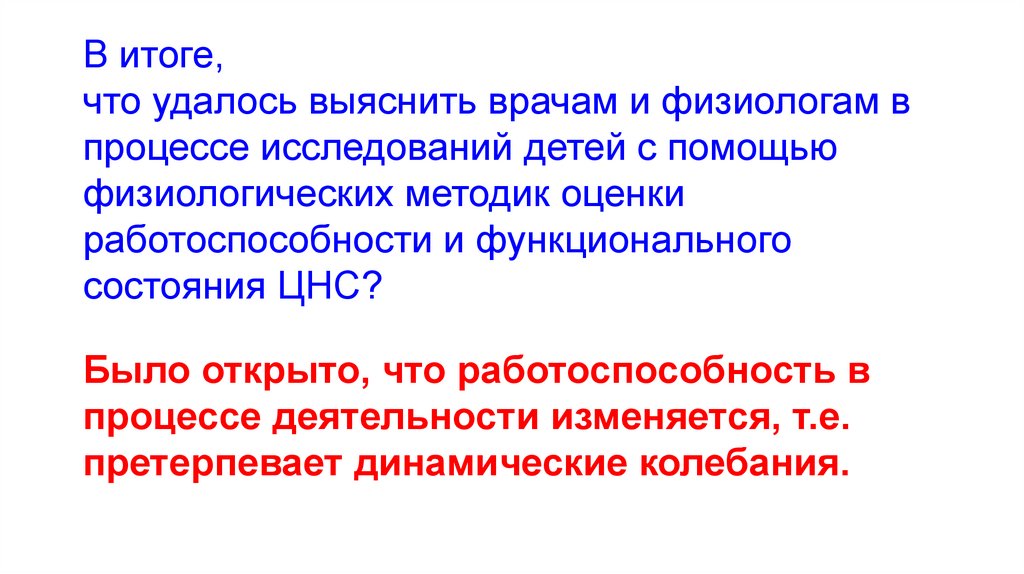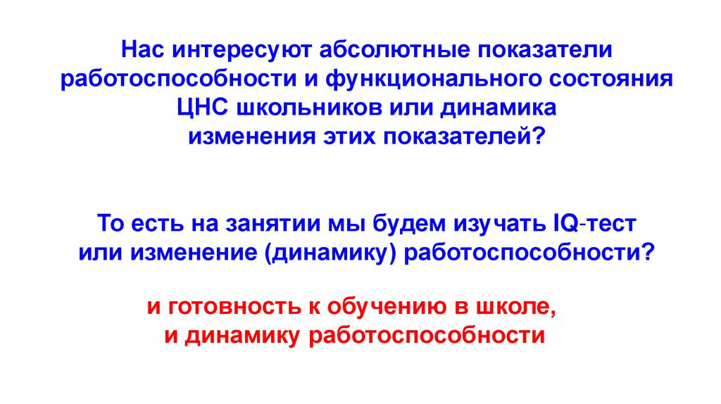 Нас интересуют абсолютные показателиработоспособности и функционального состояния