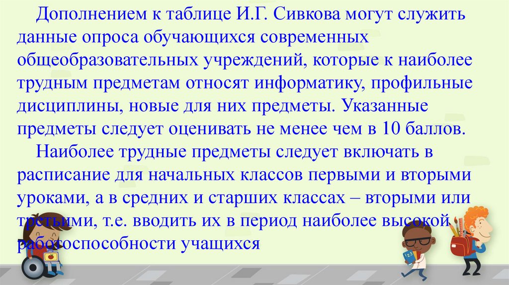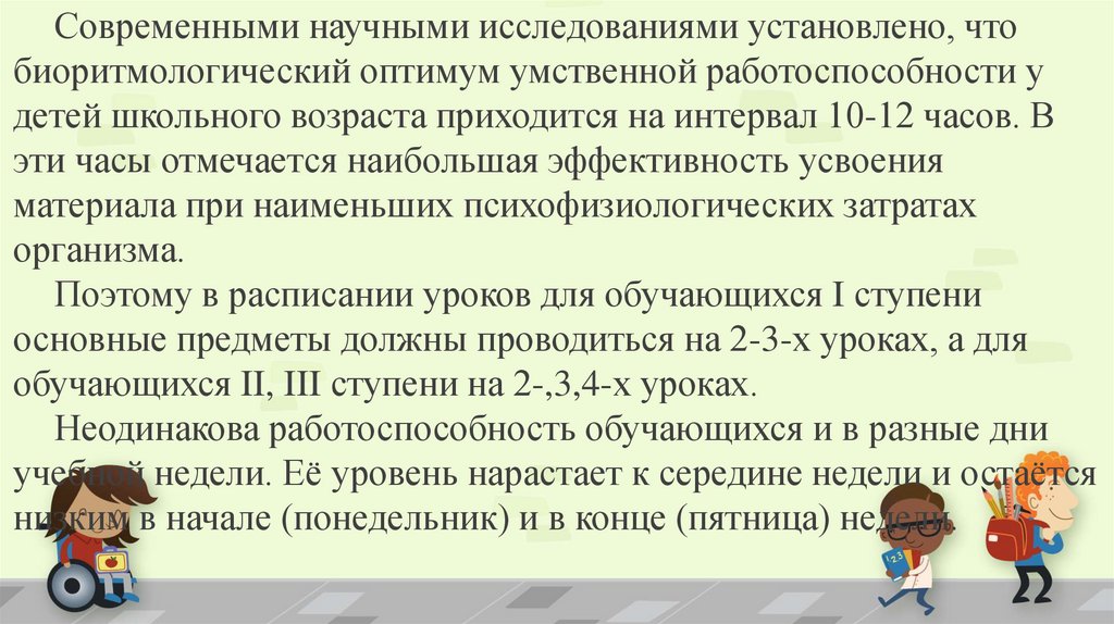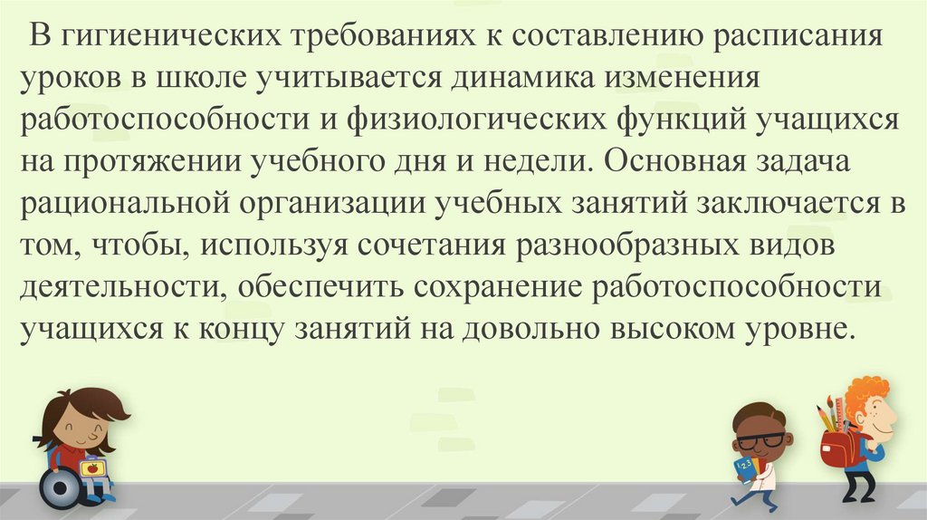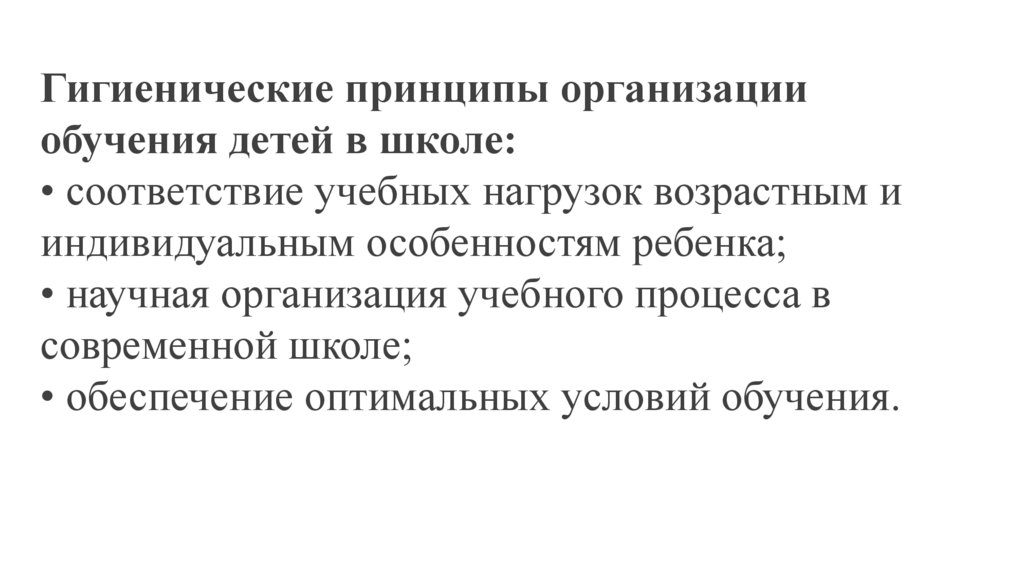 Гигиенические принципы организацииобучения детей в школе:
