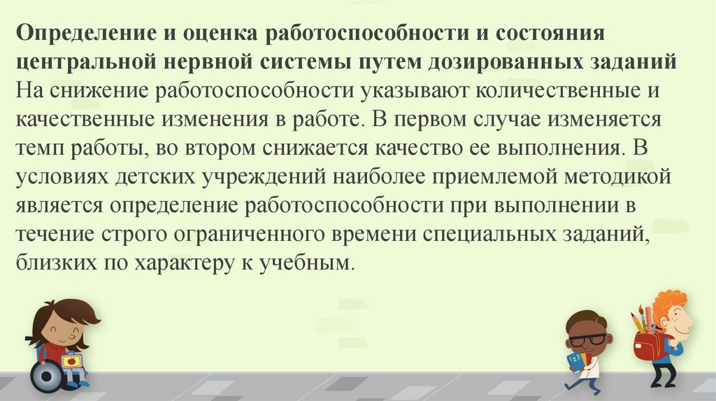 Определение и оценка работоспособности и состоянияцентральной нервной системы путем дозированных заданий