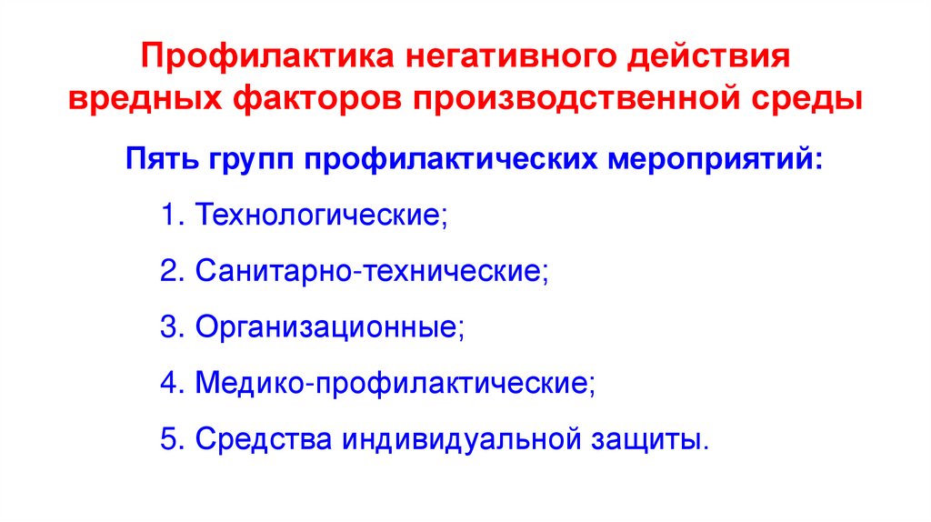 Профилактика негативного действиявредных факторов производственной среды