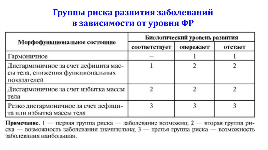 Группы риска развития заболеванийв зависимости от уровня ФР