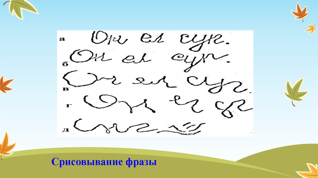 Срисовывание короткой фразы из 3-х слов («Он ел суп»).