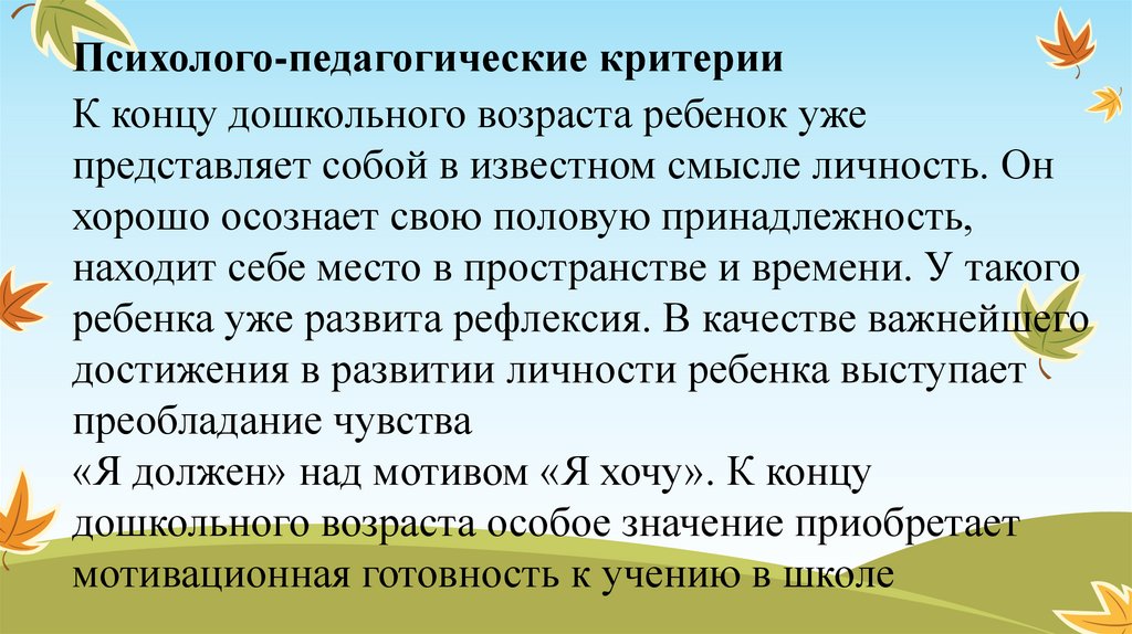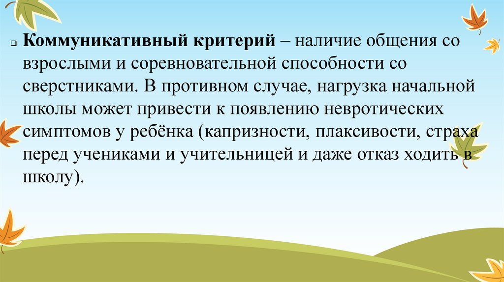 Коммуникативный критерий – наличие общения совзрослыми и соревновательной способности со
