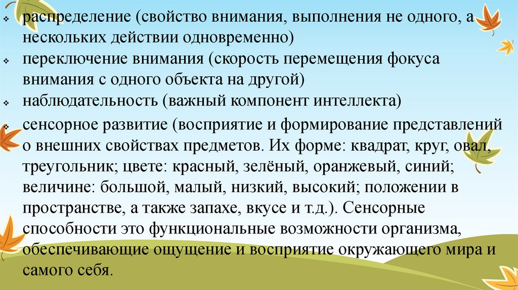 пространстве, а также запахе, вкусе и т.д.). Сенсорные