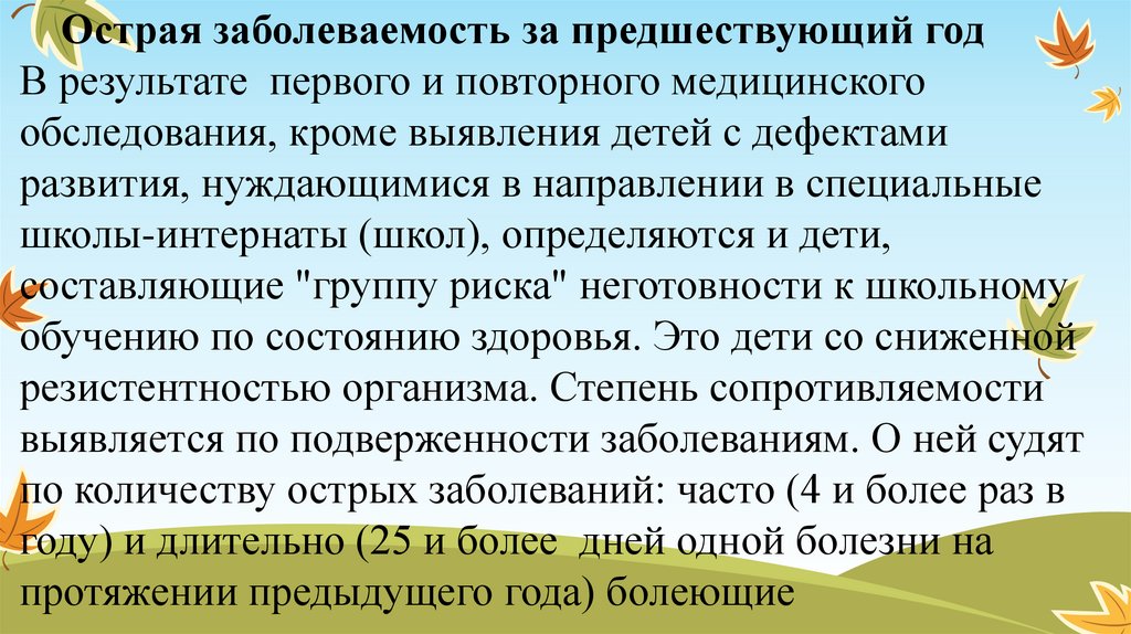 Острая заболеваемость за предшествующий годВ результате первого и повторного медицинского