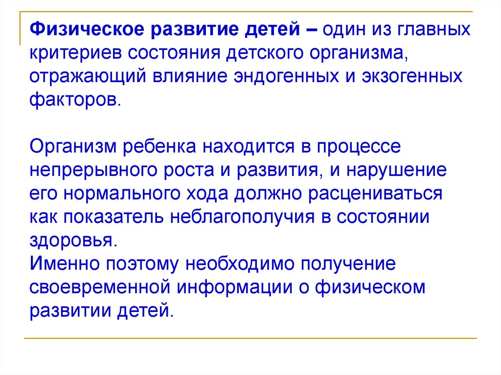 Физическое развитие детей – один из главныхкритериев состояния детского организма,