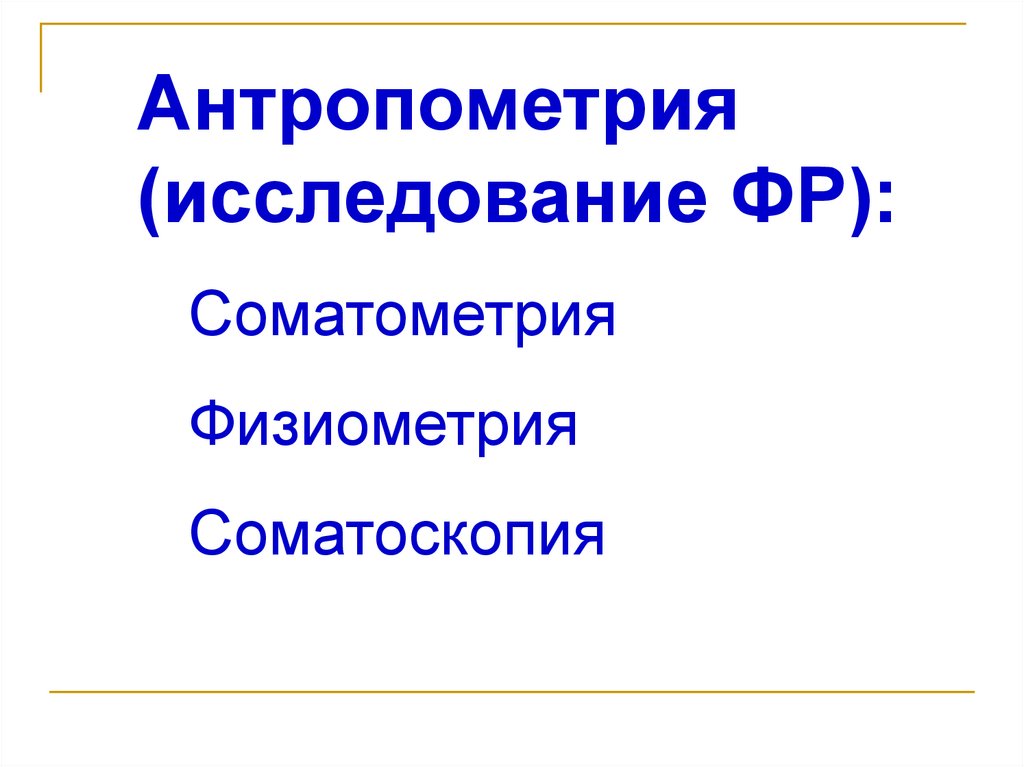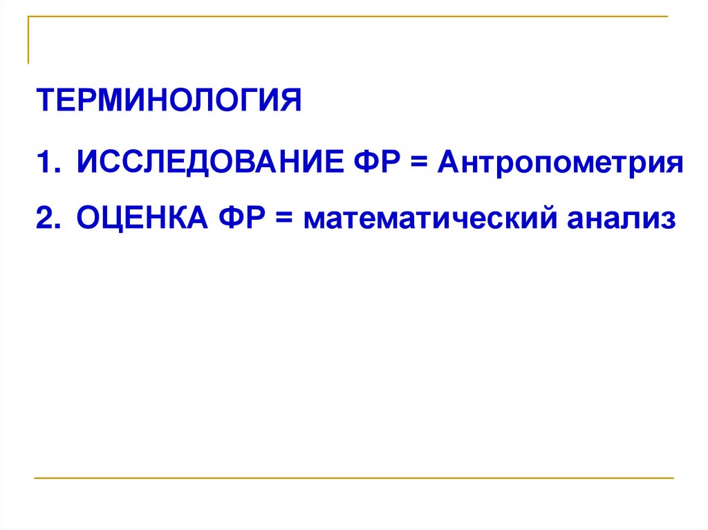 ТЕРМИНОЛОГИЯ1. ИССЛЕДОВАНИЕ ФР = Антропометрия