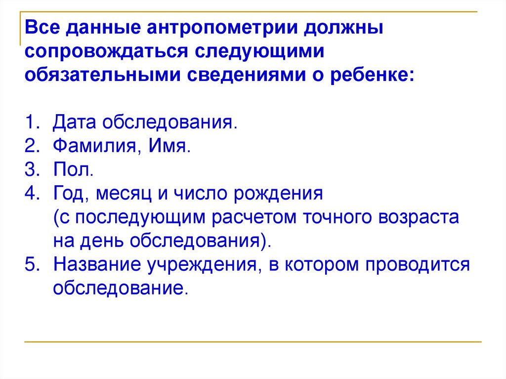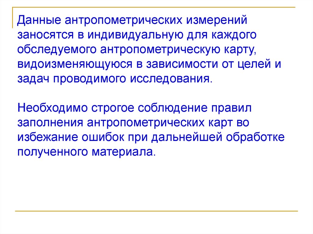 Данные антропометрических измеренийзаносятся в индивидуальную для каждого