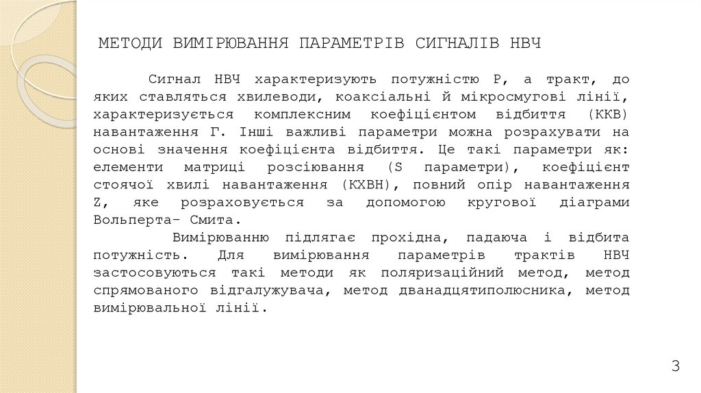 МЕТОДИ ВИМІРЮВАННЯ ПАРАМЕТРІВ СИГНАЛІВ НВЧСигнал НВЧ характеризують потужністю Р, а тракт, до