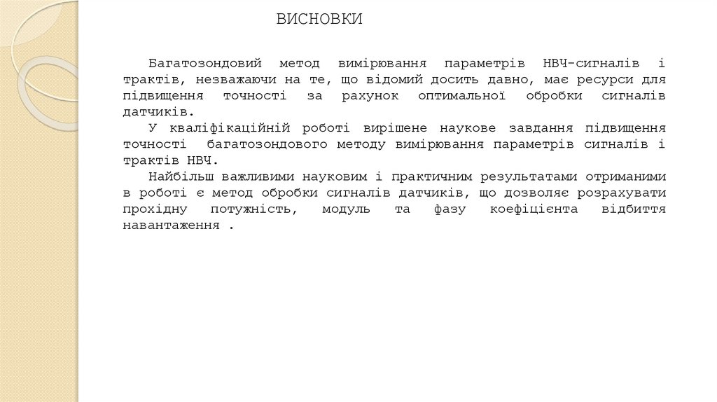 ВИСНОВКИБагатозондовий метод вимірювання параметрів НВЧ-сигналів і