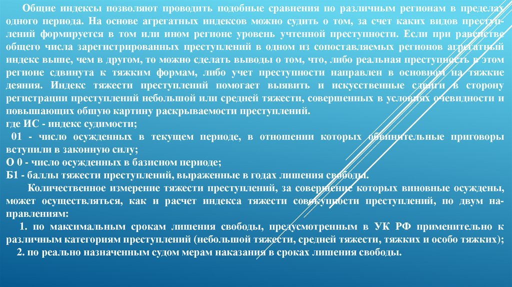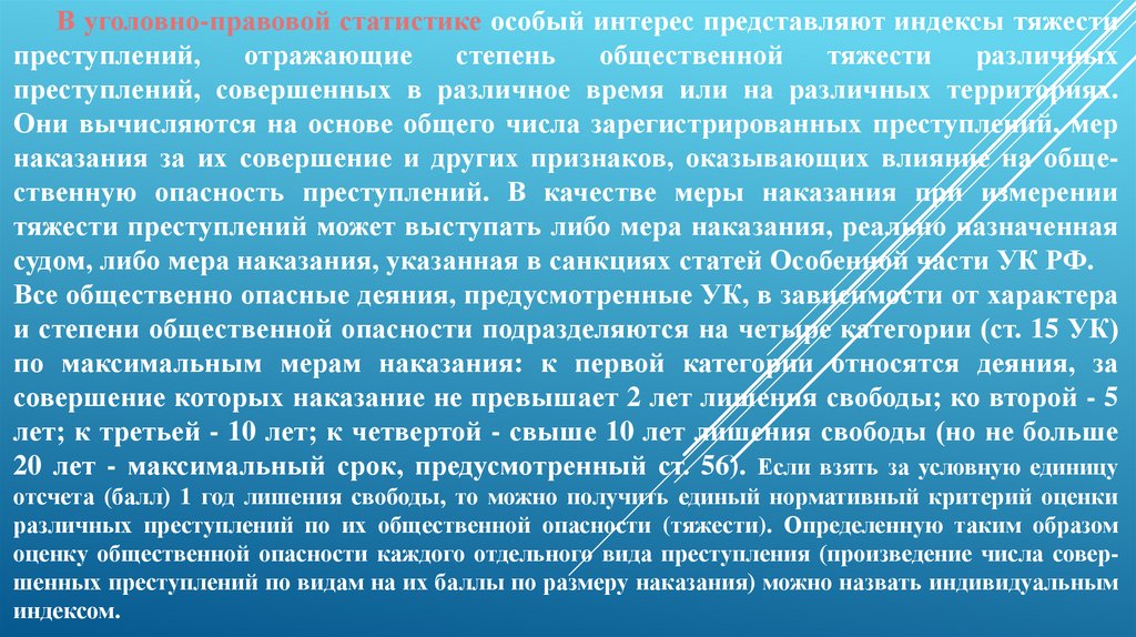 В ПРАВОВОЙ СТАТИСТИКЕ ЧАСТО ПРИМЕНЯЮТ ИНДЕКС ТЯЖЕСТИ