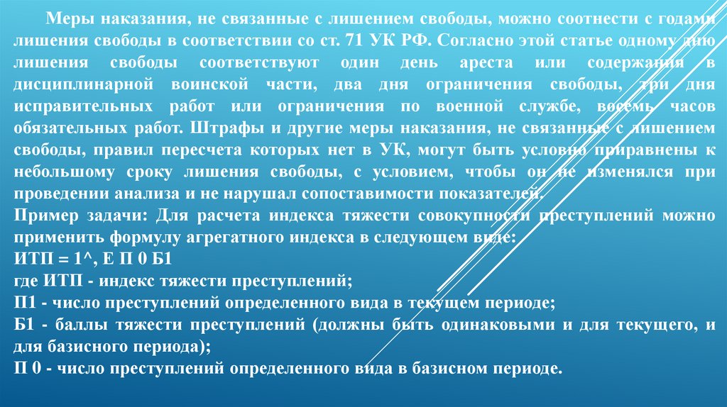 Пример задачи: Для расчета индекса тяжести совокупности преступлений можно
