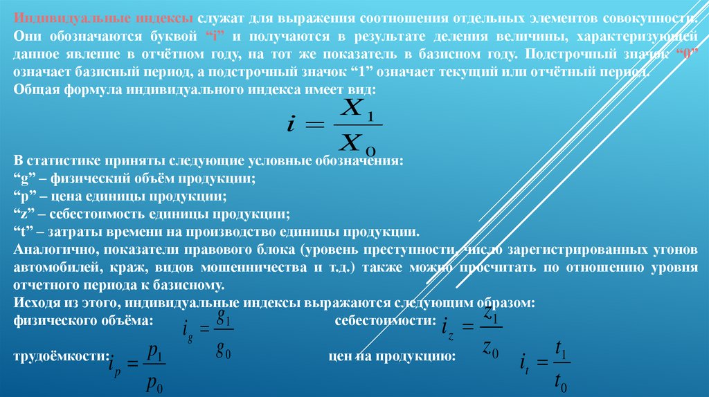 Исходя из этого, индивидуальные индексы выражаются следующим образом:
