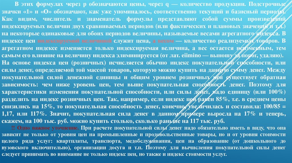 означает базисный период, а подстрочный значок “1” означает текущий или отчётный период.