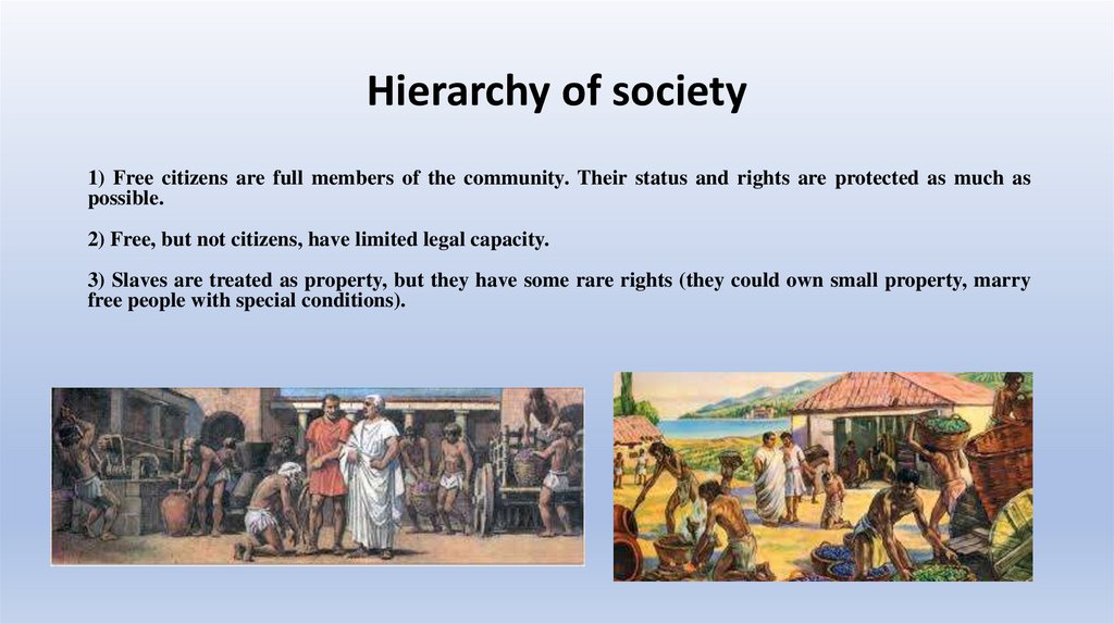 1) Free citizens are full members of the community. Their status and rights are protected as much aspossible.