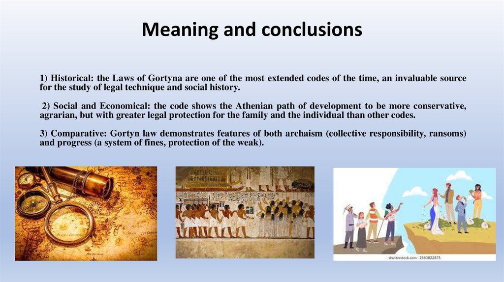 1) Historical: the Laws of Gortyna are one of the most extended codes of the time, an invaluable sourcefor the study of legal technique and social history.