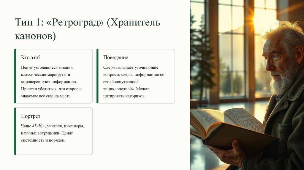 ЗаключениеЗная «повадки» каждого типа туристов, можно легко вовлечь в процесс любого
