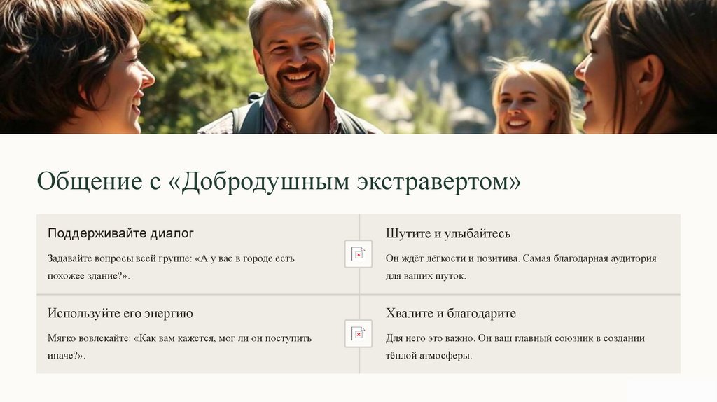 Общение с «Добродушным экстравертом»Поддерживайте диалог