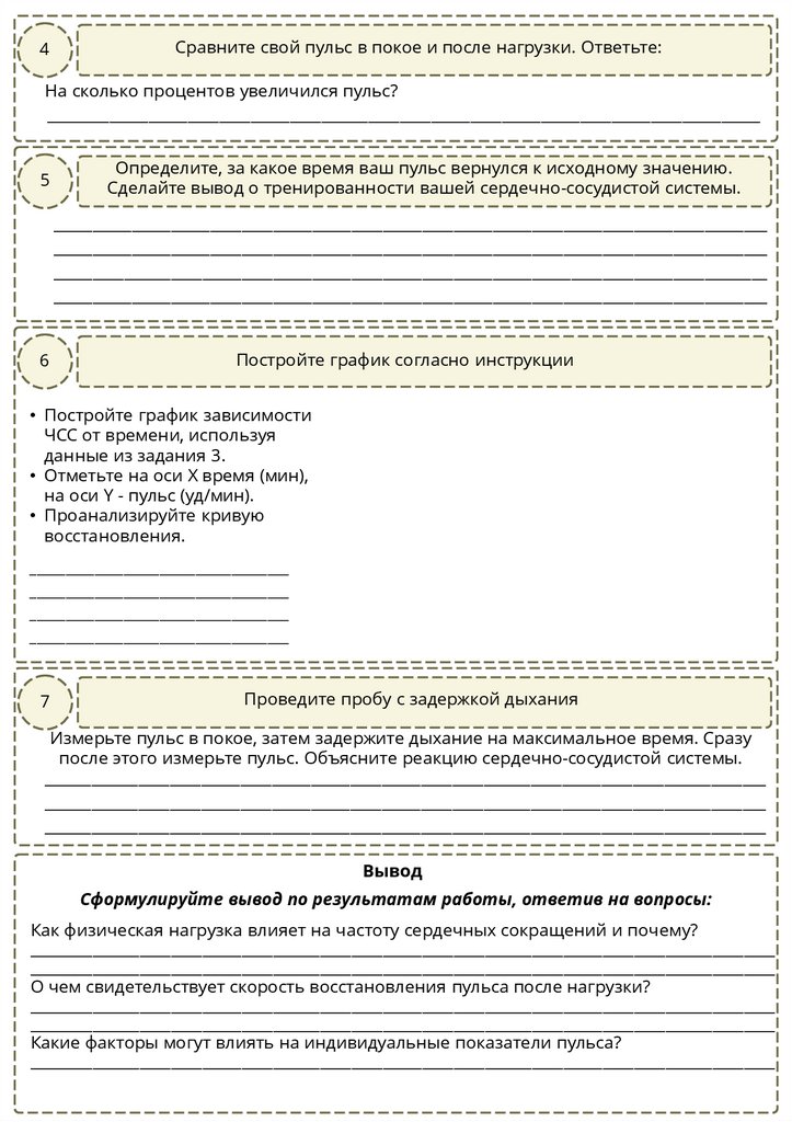 4Сравните свой пульс в покое и после нагрузки. Ответьте: