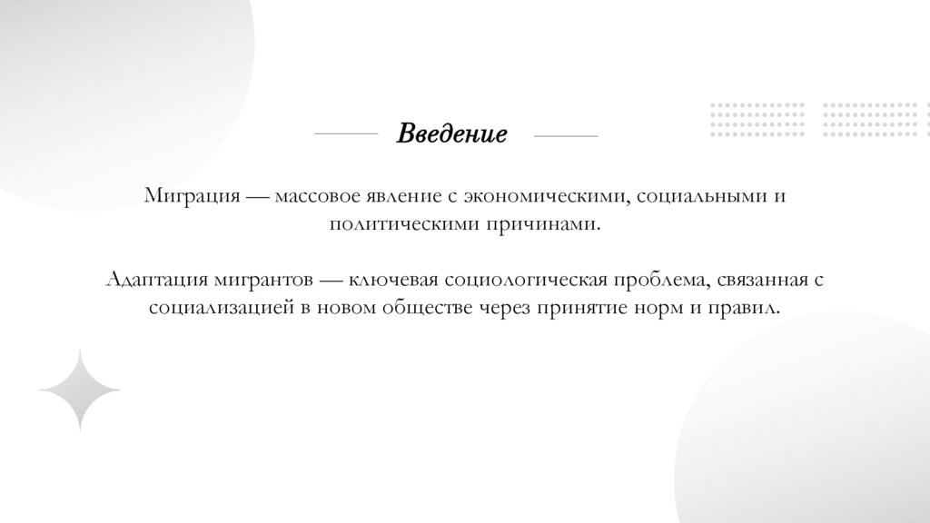 ВведениеМиграция — массовое явление с экономическими, социальными и