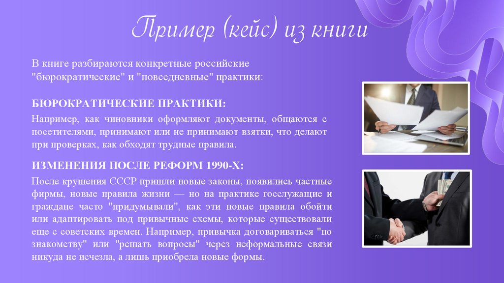 Пример (кейс) из книгиВ книге разбираются конкретные российские
