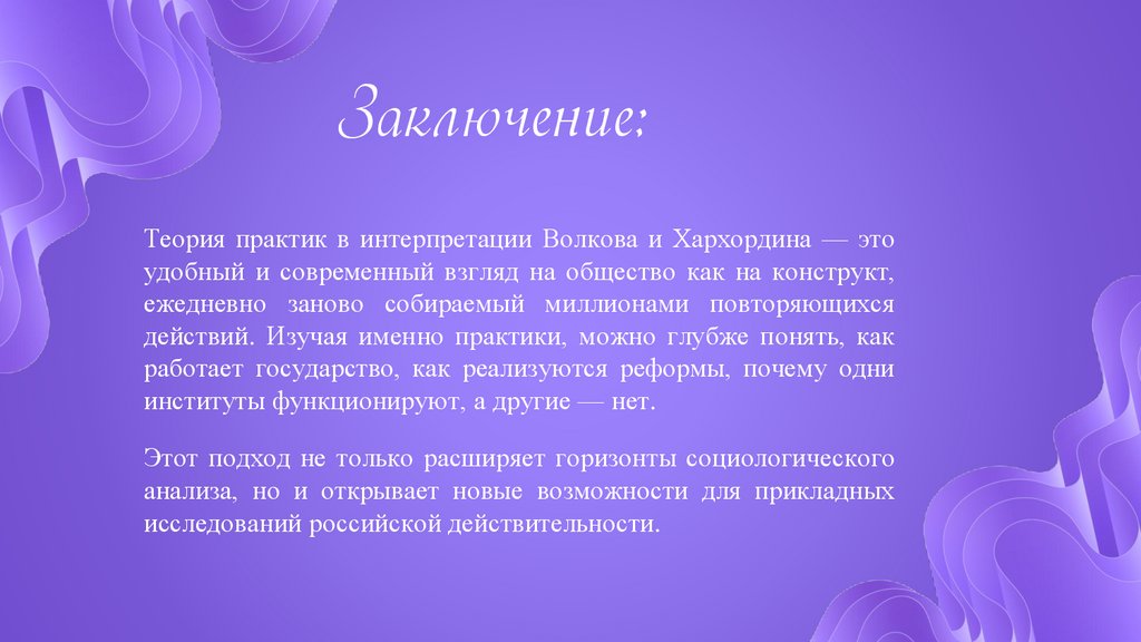 Заключение:Теория практик в интерпретации Волкова и Хархордина — это