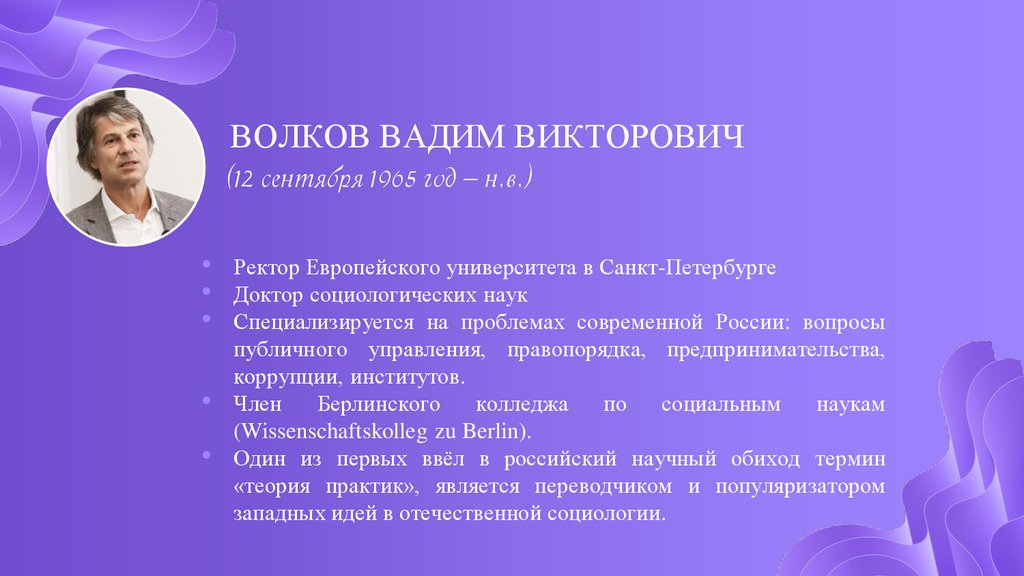 ВОЛКОВ ВАДИМ ВИКТОРОВИЧ(12 сентября 1965 год – н.в.)