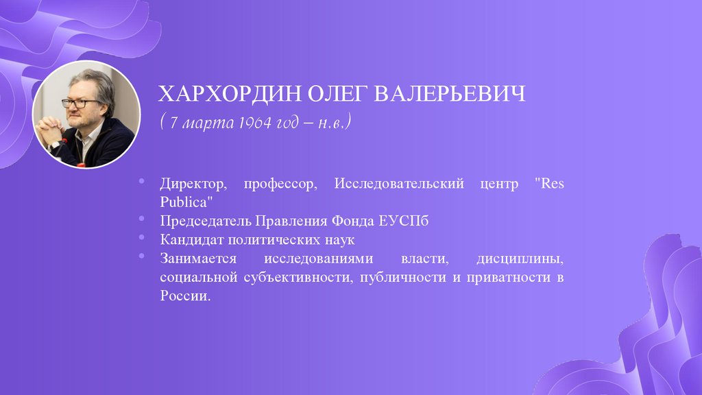 ХАРХОРДИН ОЛЕГ ВАЛЕРЬЕВИЧ( 7 марта 1964 год – н.в.)