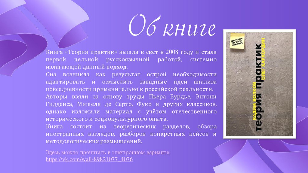Об книгеКнига «Теория практик» вышла в свет в 2008 году и стала