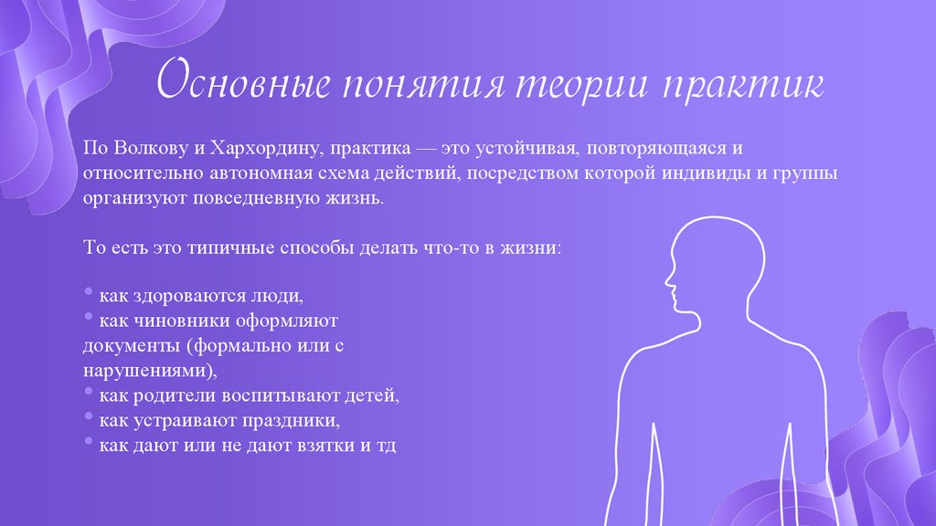 Основные понятия теории практикПо Волкову и Хархордину, практика — это устойчивая, повторяющаяся и