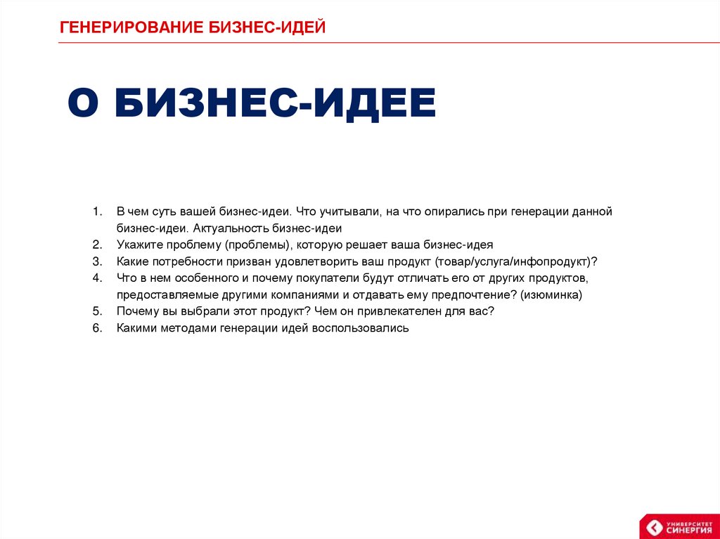 ГЕНЕРИРОВАНИЕ БИЗНЕС-ИДЕЙО БИЗНЕС-ИДЕЕ
