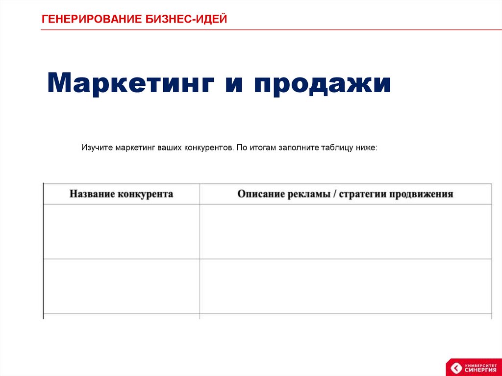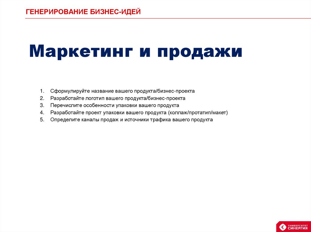 ГЕНЕРИРОВАНИЕ БИЗНЕС-ИДЕЙМаркетинг и продажи