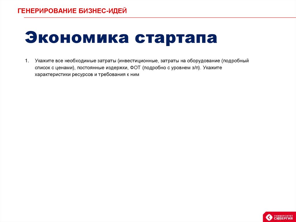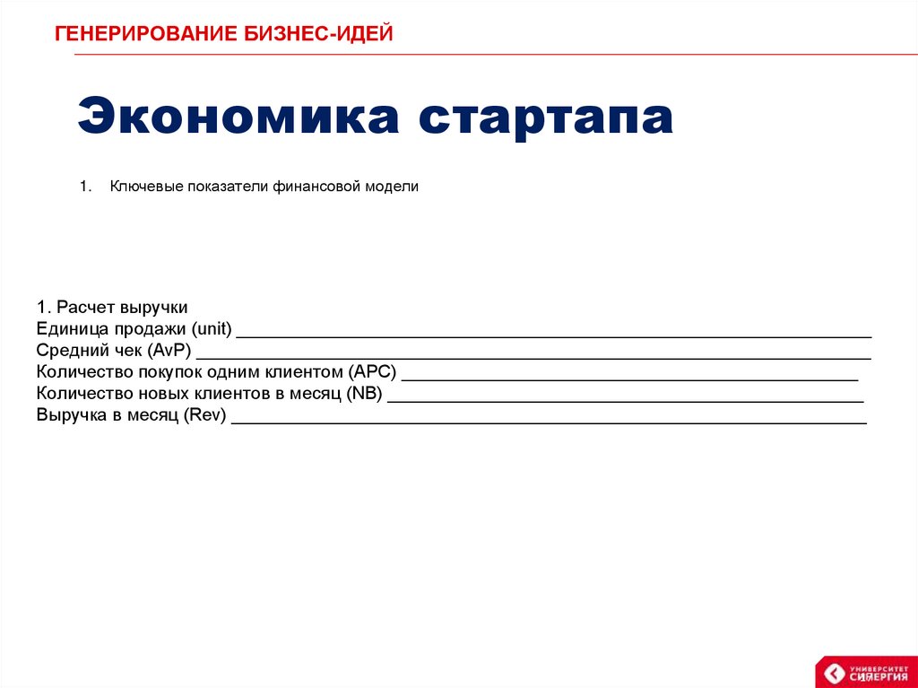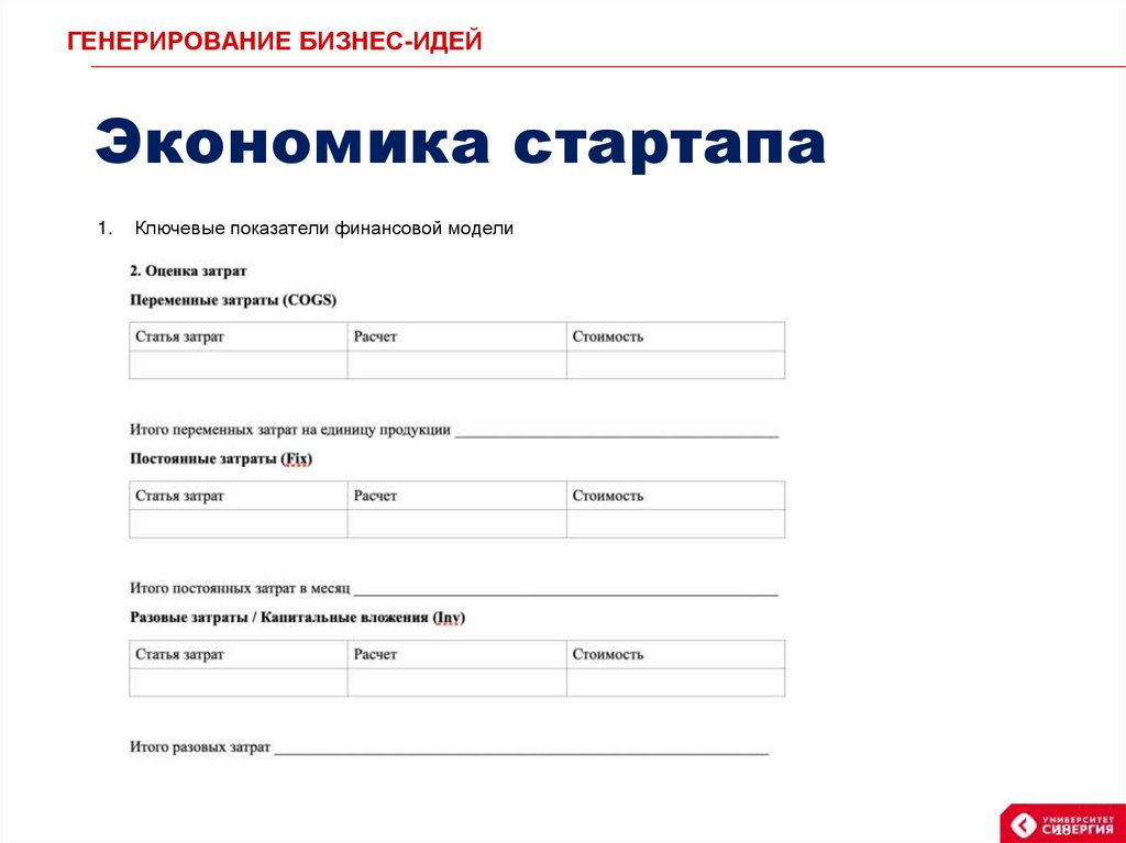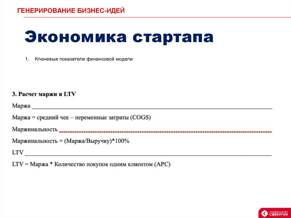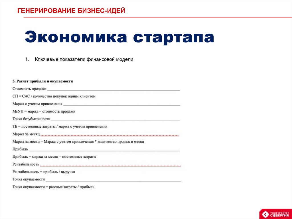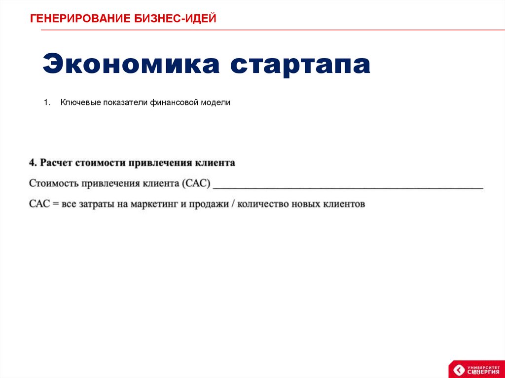 ГЕНЕРИРОВАНИЕ БИЗНЕС-ИДЕЙЭкономика стартапа