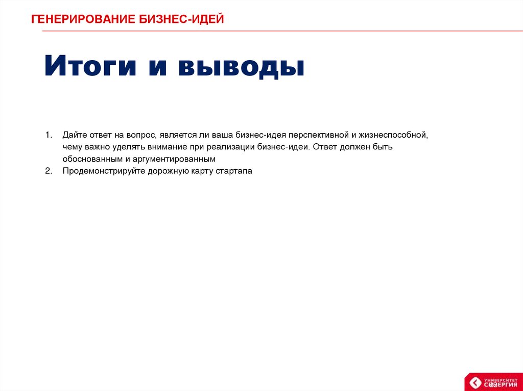ГЕНЕРИРОВАНИЕ БИЗНЕС-ИДЕЙИтоги и выводы