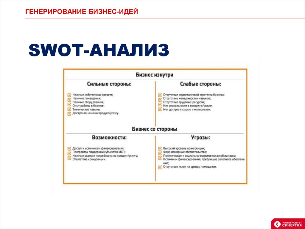 ГЕНЕРИРОВАНИЕ БИЗНЕС-ИДЕЙSWOT-АНАЛИЗ