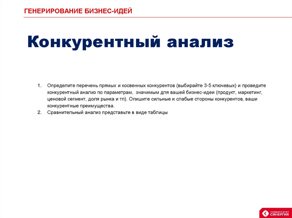 ГЕНЕРИРОВАНИЕ БИЗНЕС-ИДЕЙКонкурентный анализ
