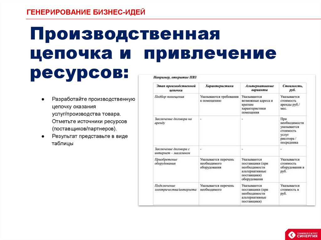 ГЕНЕРИРОВАНИЕ БИЗНЕС-ИДЕЙПроизводственная