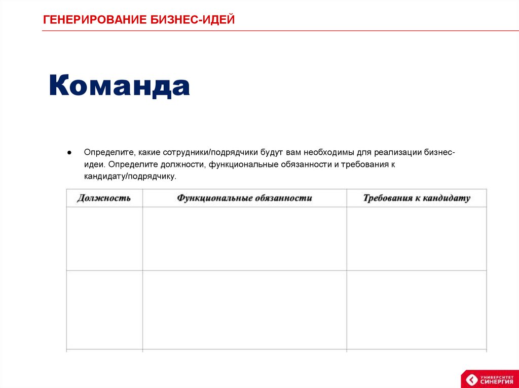 ГЕНЕРИРОВАНИЕ БИЗНЕС-ИДЕЙКоманда