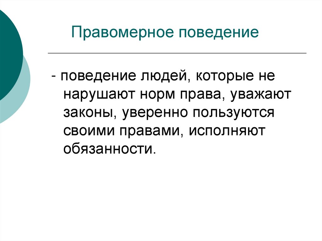 - поведение людей, которые ненарушают норм права, уважают