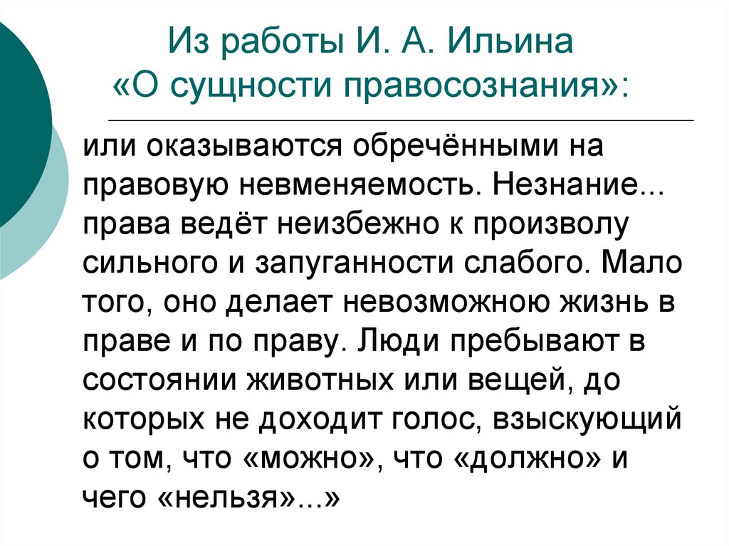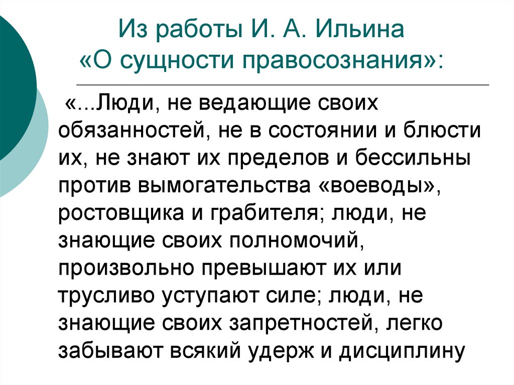 10. Из работы И. А. Ильина «О сущности правосознания»: