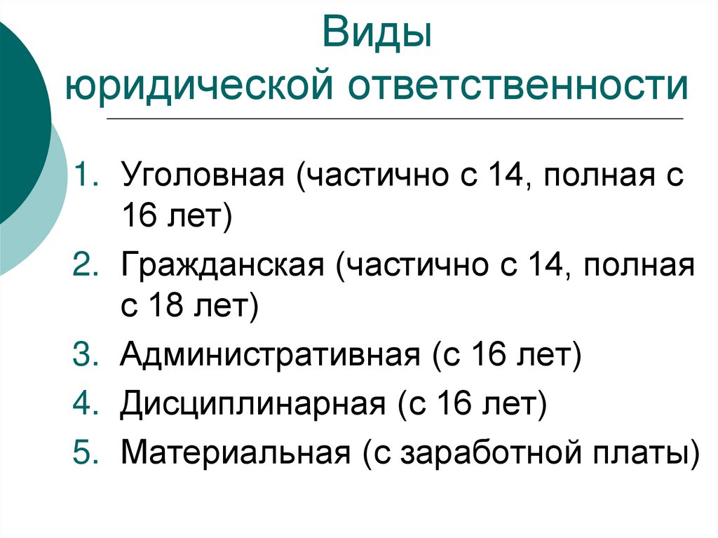 1. Уголовная (частично с 14, полная с16 лет)