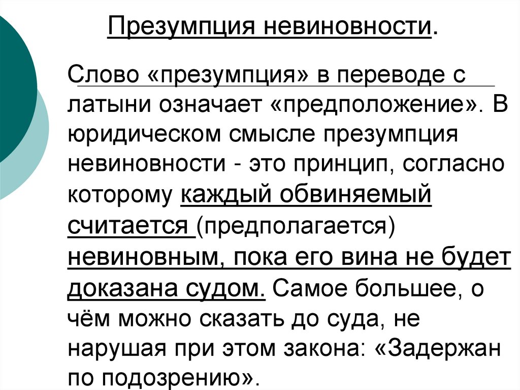 Слово «презумпция» в переводе слатыни означает «предположение». В
