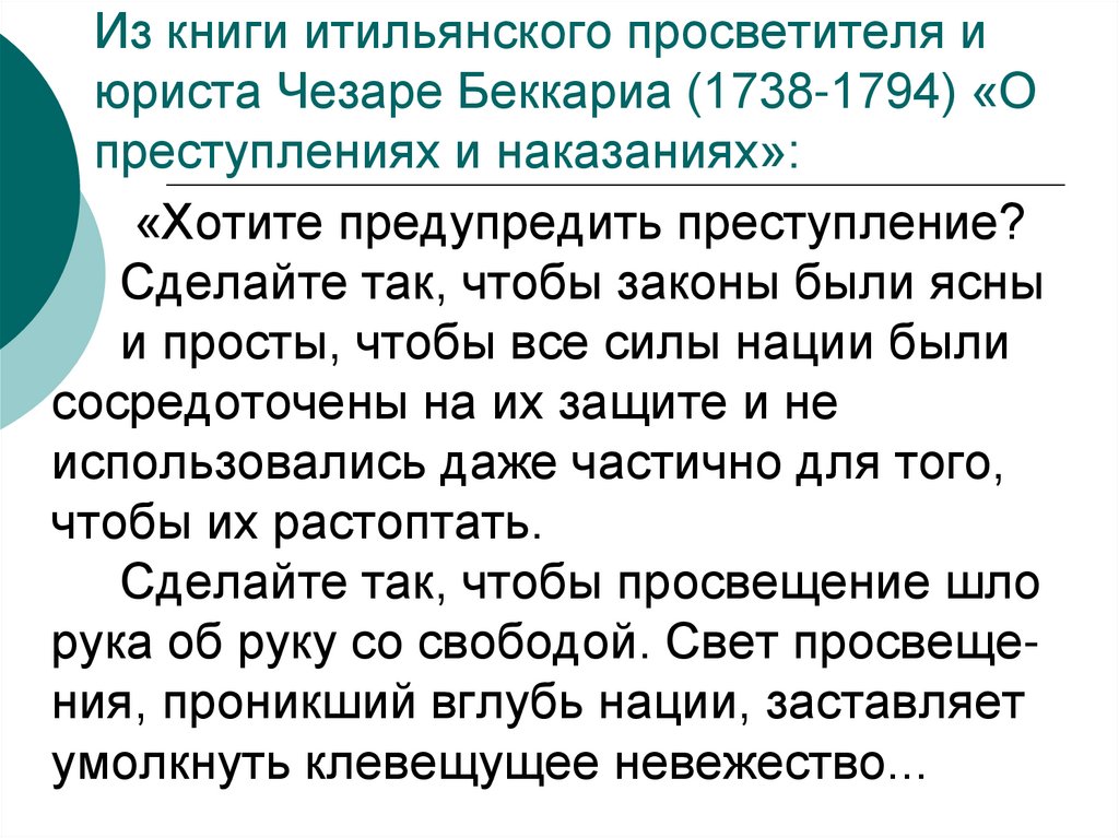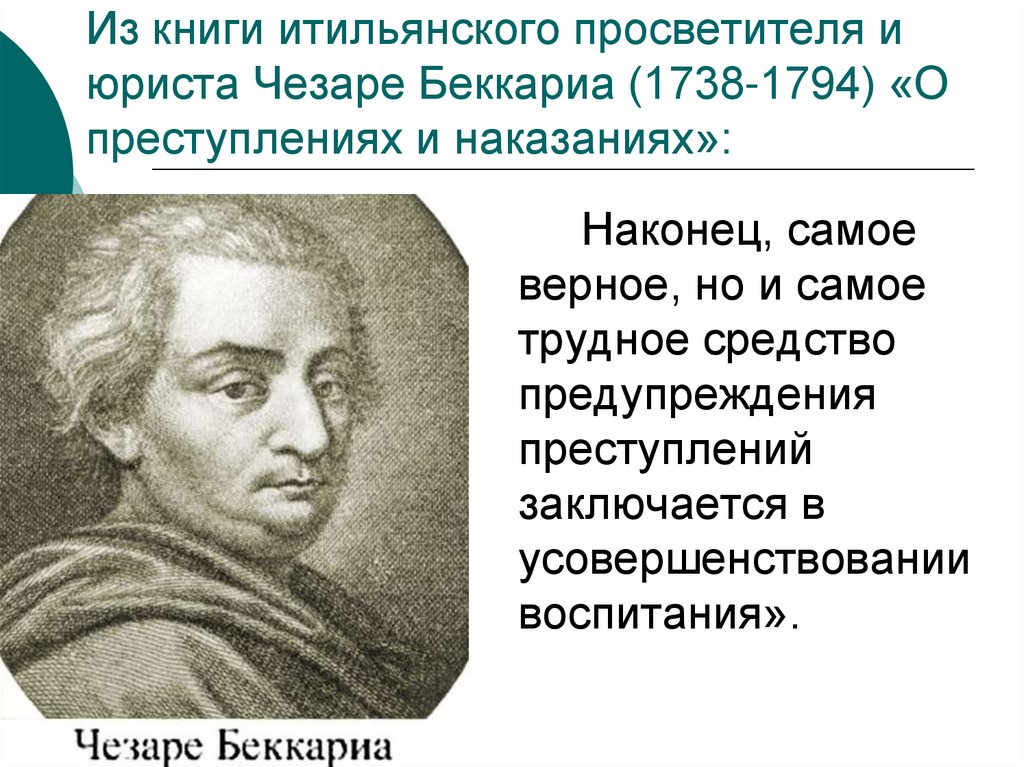 6. Из книги итильянского просветителя и юриста Чезаре Беккариа (1738-1794) «О преступлениях и наказаниях»: