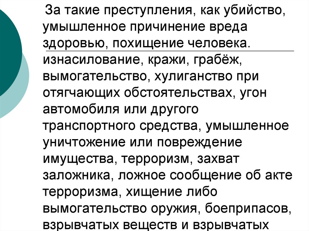 За такие преступления, как убийство,умышленное причинение вреда