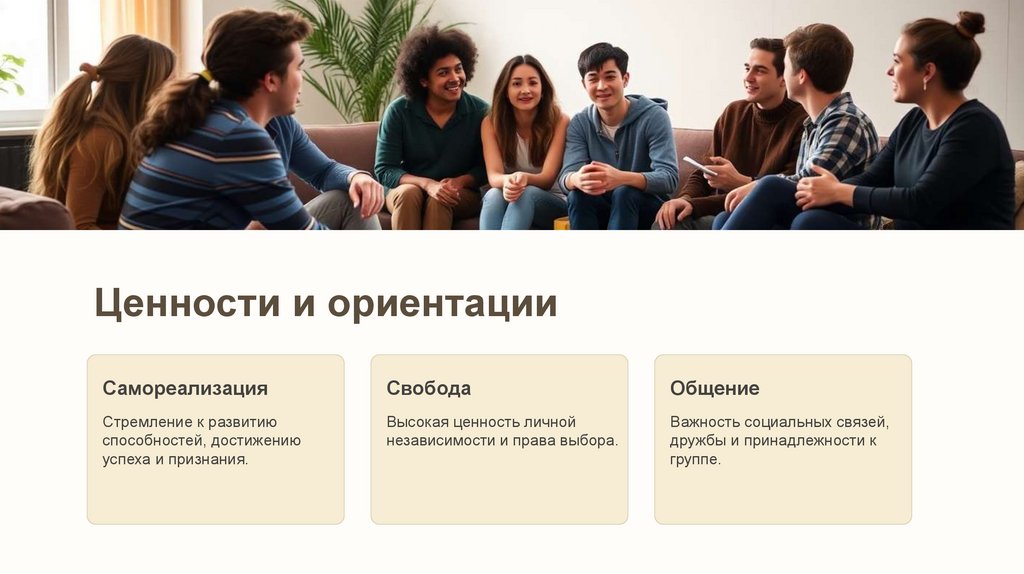 Приоритет личностного роста, поиска смысла жизни и формирования устойчивой жизненной позиции.