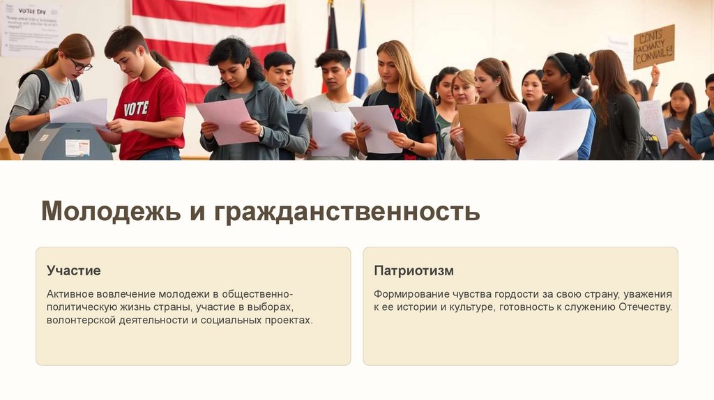 Активное вовлечение молодежи в общественнополитическую жизнь страны, участие в выборах,
