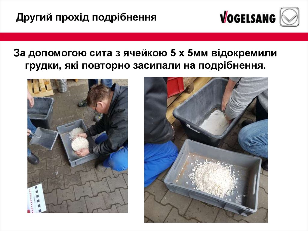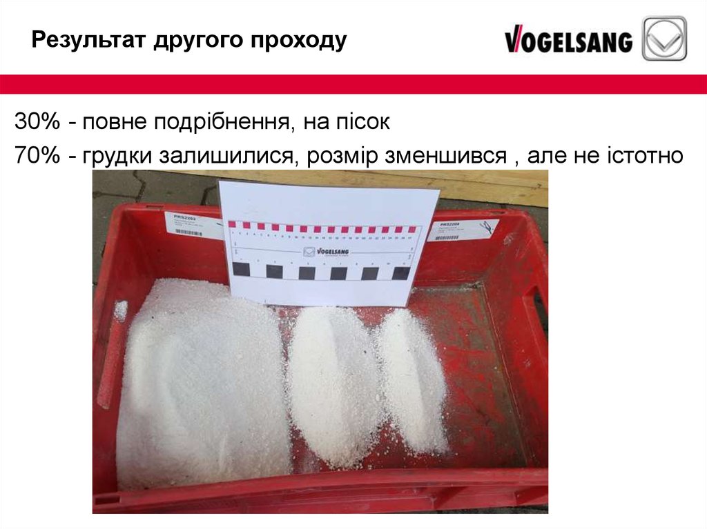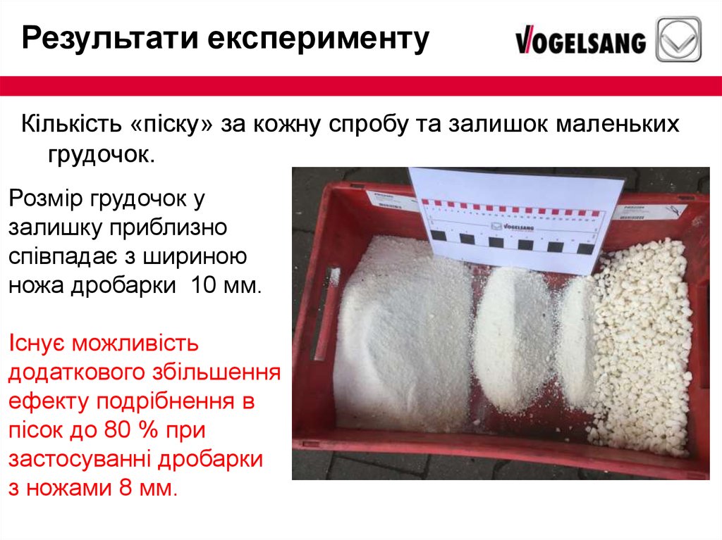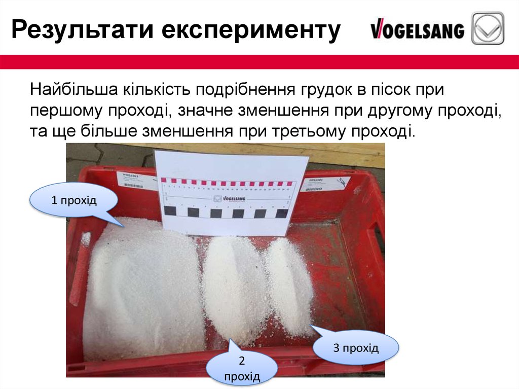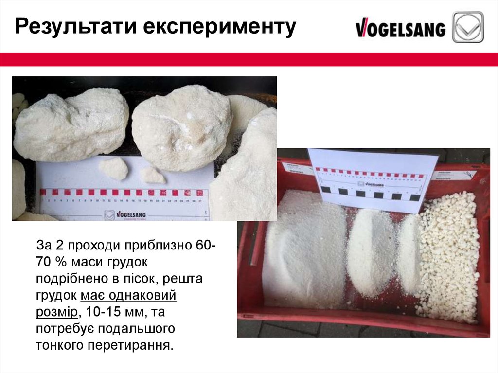 Результати експериментуЗа 2 проходи приблизно 6070 % маси грудок